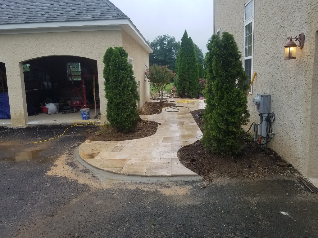 I was out of town do things slowed down, but moving again now. The patio is done and so is most of the walkway....10 or 15 feet to go....it should wrap up tonight or tomorrow. The oven build is tentatively set fo start Saturday ...then stucco.....then garage.....then Ferrari :)