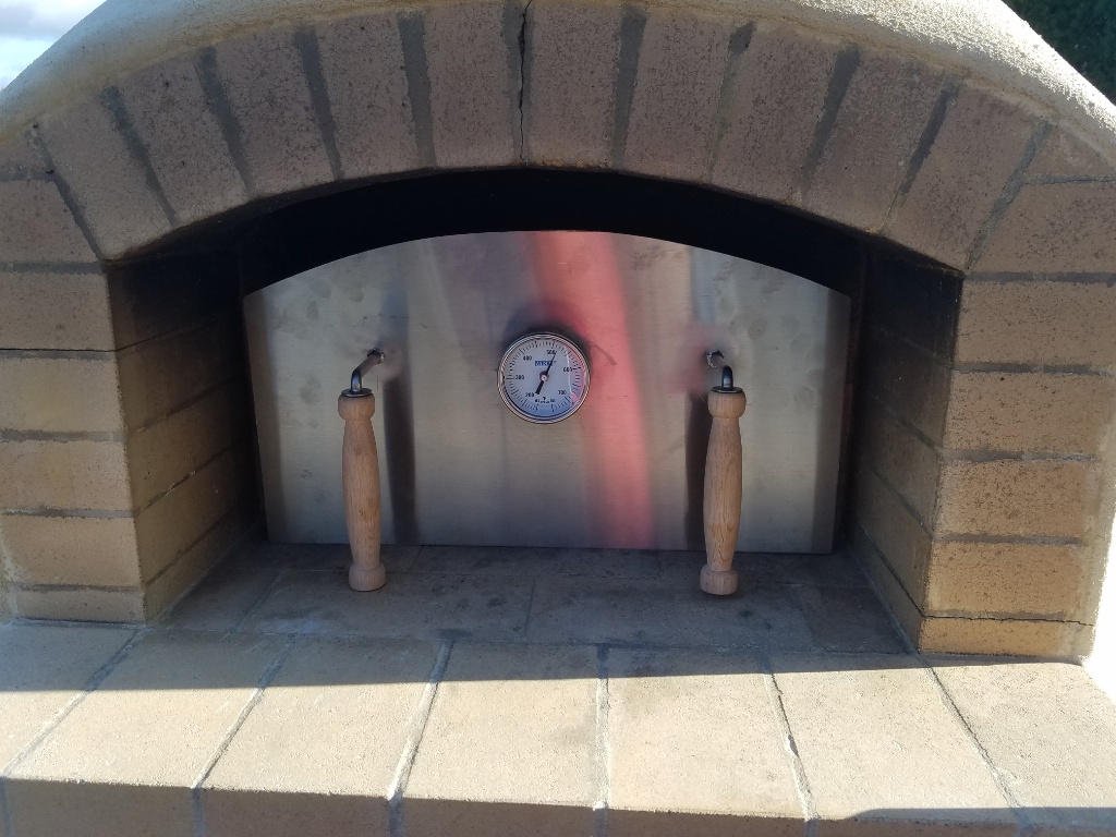 Hat up takes a while but I don't move the fire around. I build a pretty big fire right in the middle, light it with a 100k btu propane weed burner, and keep adding wood for 45 minutes to an hour. By them there are a lot of coals but still a raging fire, I push all that to the back, maybe spread it to cover 90-120 degrees of the back wall, throw a couple more hunks of wood in and let it go about 10-15 minutes so the center cools down and the top of the done is "burned white" which means any and all soot has burned off which means the done is at least 800F, there is a pic a couple posts down. Floor temp of 550-750 seems to work pretty well for pizza, any hotter and you blacken the bottom, I bought a laser thing but you can also tell by throwing in some semolina flour and watching it....if it turns black when it hits the floor the floor is still too hot and you need a wait a bit more or plan to drop the pizza closer to the door. For sure it takes practice.....I have a habit of flipping the topping into the fire :(