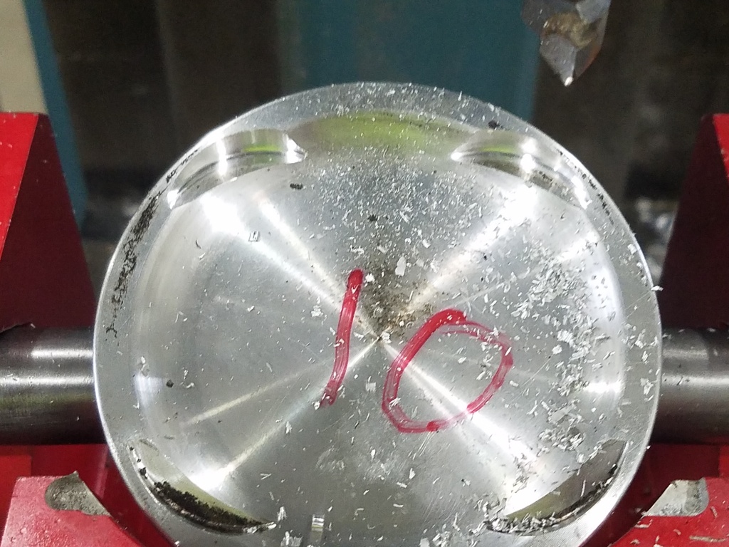 Then I picked our the piston with the worst looking valve marks, bought the cutter to the mark an moved over 0.050 and cut