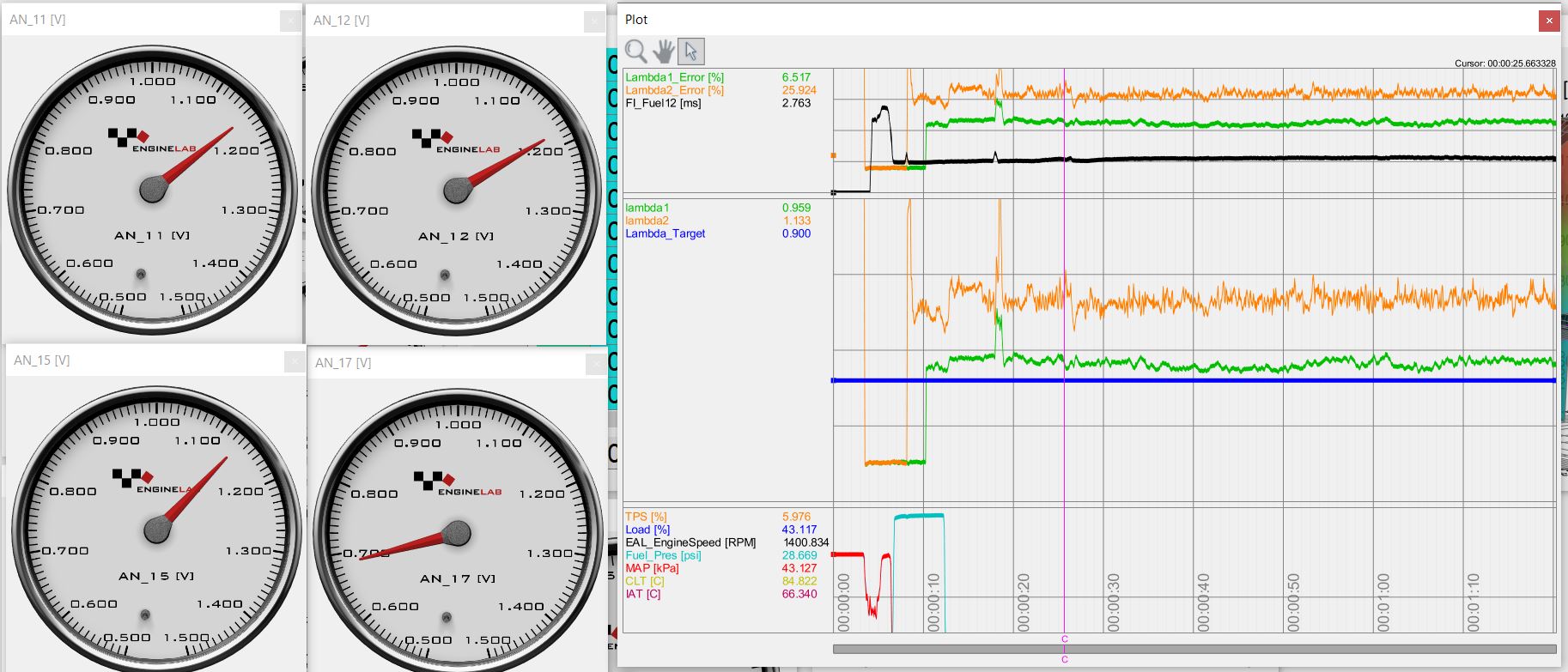 This evening I spent some time digging through log data...the NB sensor are working just not the way I expected. I was displaying a lambda based on a simple lookup table created from the bosch data sheet...but it looks like the pullup is buggering it so the table was all wrong. its supposed to be 1.0 lambda at about 0.5V, rich above, lean below with a big dead zone from like 0.3-0.7. that's what I planned for but not what I have....it looks like I'm reading 0.5-1.5V with 1.0 lambda at about 1.0V, lean below, rich above so backwards and offset 0.5V