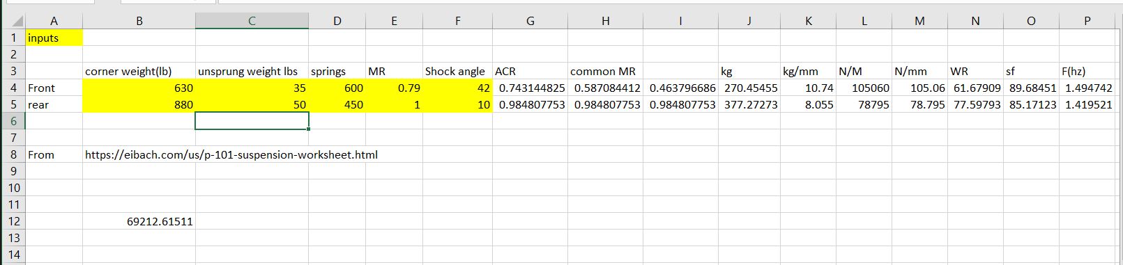 With my current 450/400 springs the numbers are 1.29/1.34.....so the rear is stiffer than the front which certainly explains the oversteer issue.