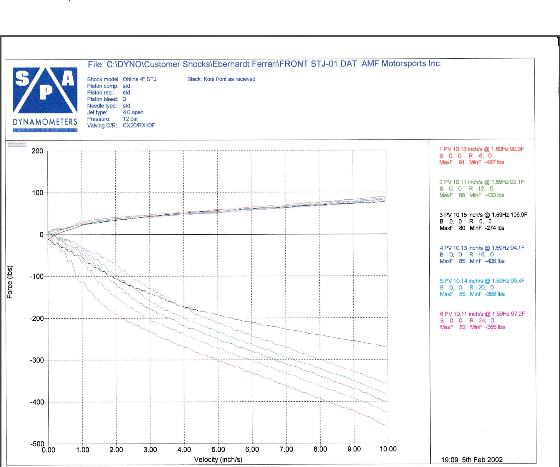 Rebound wise though, I'm already on the QA1 blue line at 1in/min, 0-2in/min is generally considered low speed damping, and the transition knee is usually right around 1in/min so by 2 its fully into the highspeed damping behavior. Low speed is small bumps like highway joints and and the pitch/roll/dive from driver inputs....so to make the car feel responsive you want to add low speed damping, but that will also make it feel every bump aka harsh. The high speed range is big bumps, track curbing and such and I'm at near full or nearly so on my current shocks with the new 800/500 springs and that feels ok.