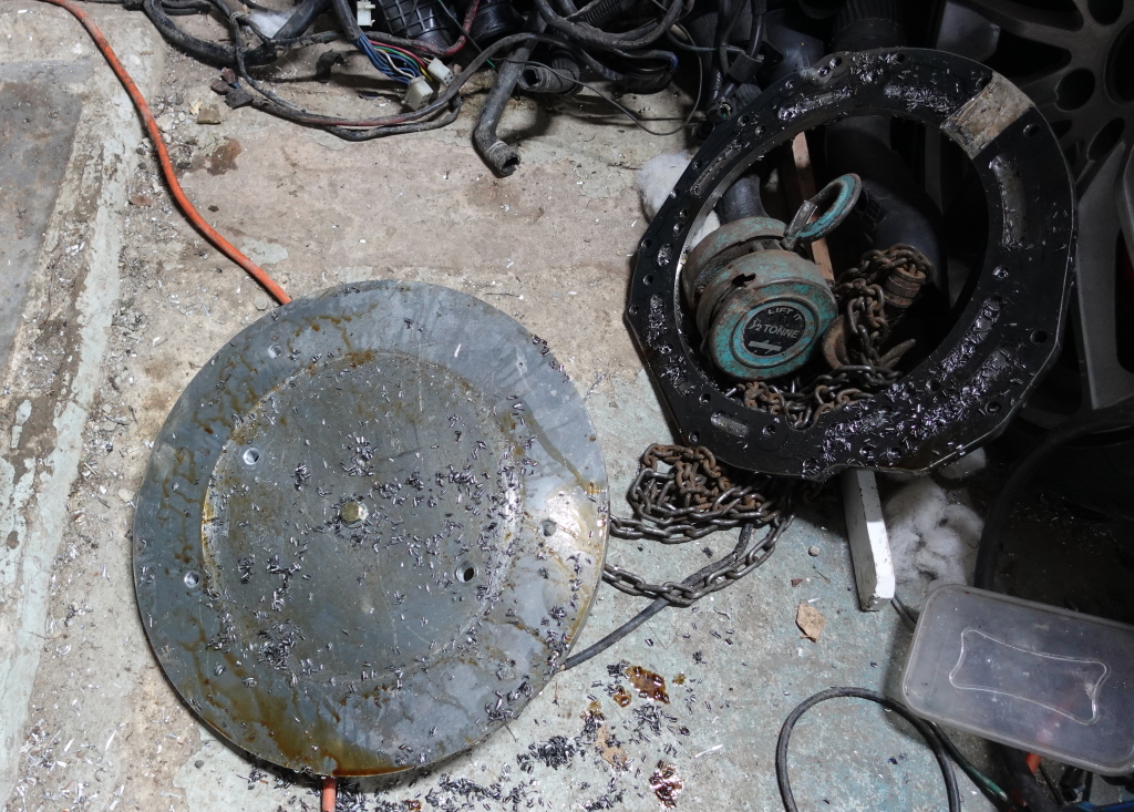 Thanks for your kind words, Gentlemen! As requested, here are some more photos - first up is the fixture I made to hold the custom engine/trans adapter plate. When I finally got it from the company who provided it, the damned thing was so heavy that I couldn't make myself use it. So - some weight had to come off...